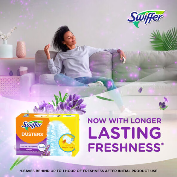 Swiffer Dusters TRAP + LOCK dust wherever dust shows up, including fan blades, blinds, car interior, keyboard vents, bookcases, and more. They are made with specially coated fibers that grab onto dust & don't let go. Enjoy the lasting freshness* of lavender as you clean. Assembled in the USA.