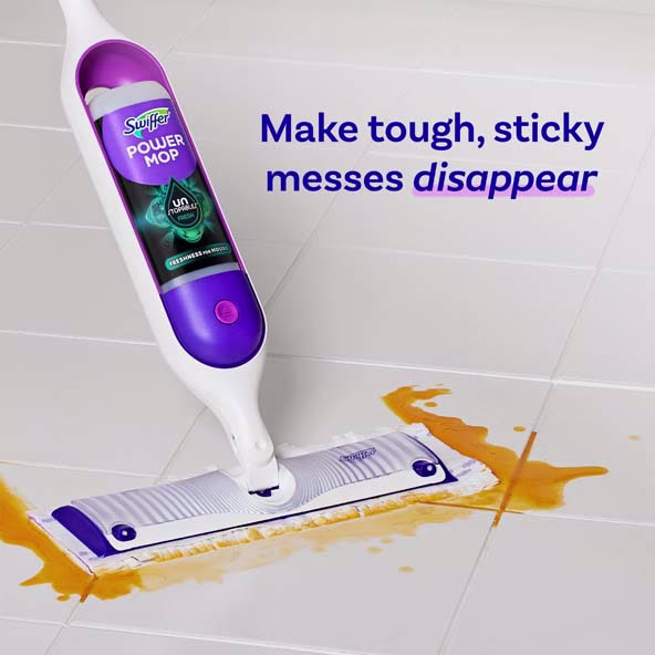 Mop smarter with the Swiffer PowerMop, an all-in-one mopping system that gives you a mop and bucket clean in half the time*. The pre-mixed solution breaks down tough, sticky messes and dries fast – no need to rinse! Enjoy the scent of PowerMop Unstopables solution as it fills your home with freshness for hours**.
