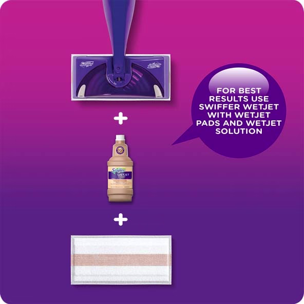 Swiffer WetJet Hardwood Floor Cleaner, Spray Mopping Pad Refills have a new ABSORB + LOCK STRIP that helps trap dirt & grime deep in the cleaning pad so it doesn't get pushed around. When you’re done, just remove the pad and throw it, and all that dirt, away forever.